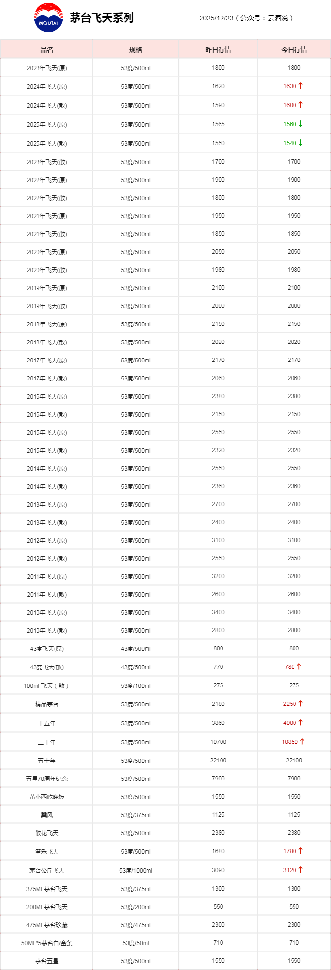 云酒说首页>资讯>2025年12月23日茅台十五年价格继续大幅度上涨