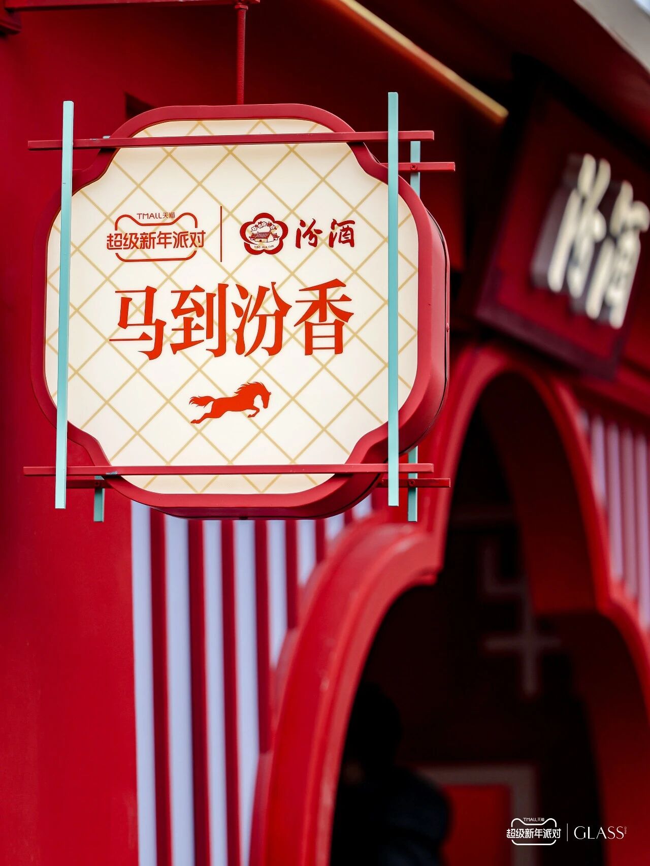 2月1日至2月4日,在上海市静安区万象天地天后宫,汾酒依托天猫超级新年派对,以“马驰春意动”为核心主题,于百年古典建筑之中,构建了一座“非遗+国潮”的沉浸式美学空间。活动将经典文化符号融入其中,杏花图案化作空间装饰,青花瓷融入潮流吧台,走马灯承载非遗技艺与新春祝福,为消费者营造出极具仪式感的悦己氛围。