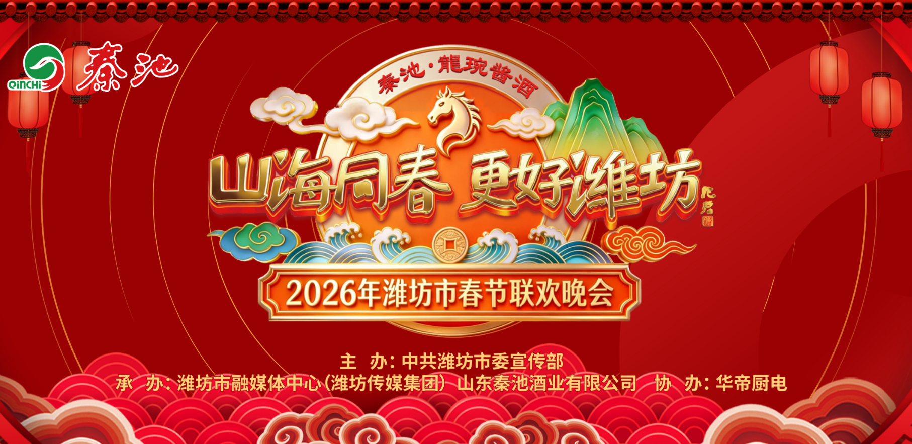 2026年潍坊市春节联欢晚会由山东秦池酒业独家冠名。本届春晚以“山海同春,更好潍坊”为主题,将于2026年2月11日(农历腊月廿四)在潍坊广电大厦D8演播厅隆重上演。