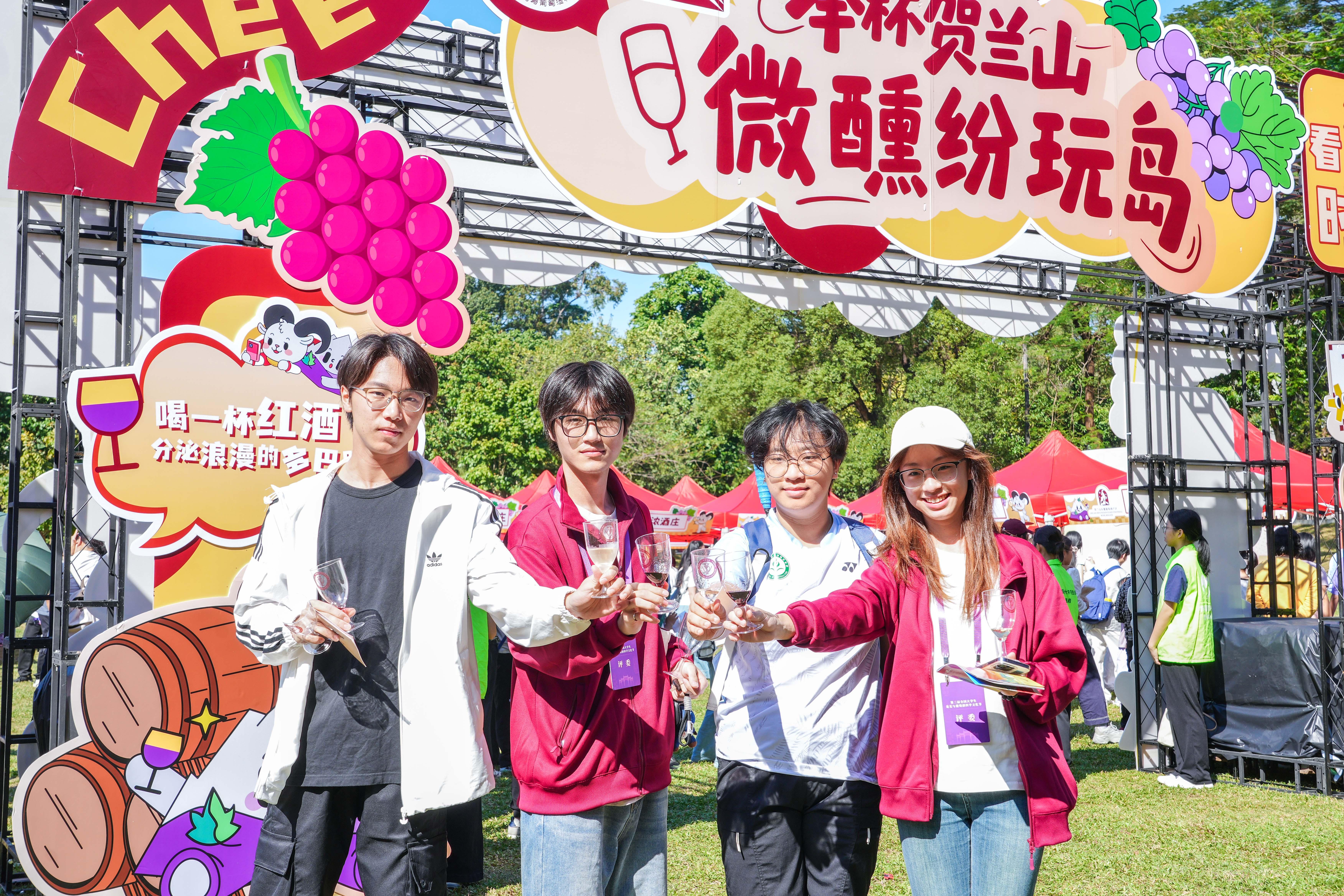 各色佳酿在酒杯间流转,葡萄酒香令空气微醺……葡萄与葡萄酒科学文化游园会暨粤菜美食嘉年华现场人头攒动,参会本土葡萄酒企业拿出好酒供游客现场品鉴,华农各大食堂美食带来舌尖盛宴,现场同步布置“举杯贺兰山—微醺纷玩岛”专题活动、宁夏产区葡萄藤认养展区、“天山杯”全国大学生葡萄与葡萄酒艺术创意大赛作品展、华农校友企业展、华农优品展,吸引了众多师生、校友和市民前来参观游玩。