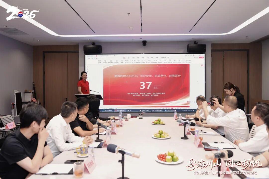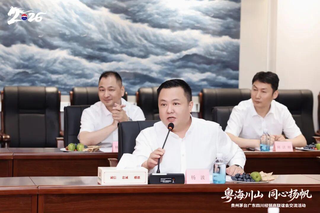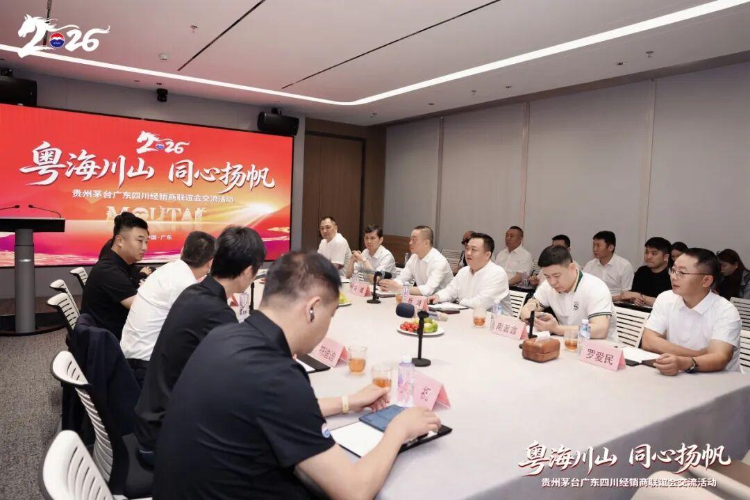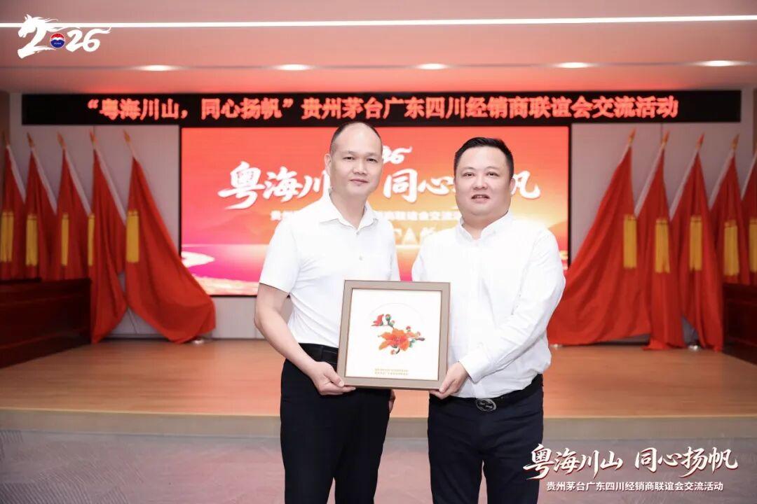 乘着春日的暖风,2026年4月13日至14日,贵州茅台四川、广东经销商联谊会跨省交流活动在深圳圆满举行。本次活动以“全面向C 推进市场化转型”为中心,围绕“深化交流协作,共促转型发展”展开。四川经销商联谊会会长杨波、广东经销商联谊会会长刘家生带领两省茅台经销商代表齐聚鹏城,共探以消费者为中心的先进举措,共话市场化转型下的发展蓝图。贵州茅台酒销售有限公司广东省区总经理蔡锷、副总经理杨雪出席活动。